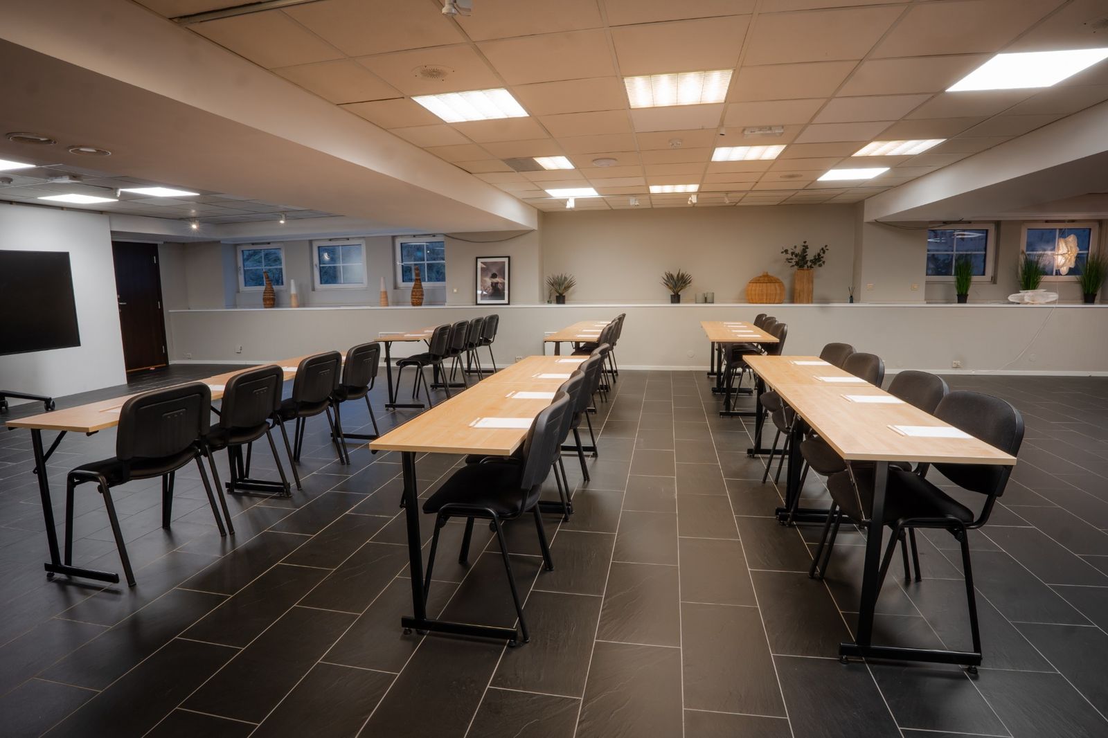 - Utstyrt med toppmoderne AV-utstyr, notatblokker og penner